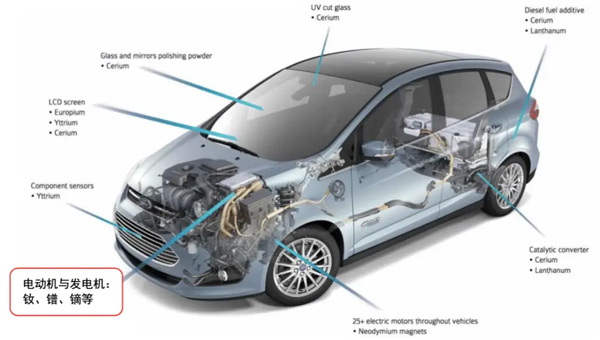 汽车产业方面,一台新能源电动小轿车至少用到十公斤稀土。