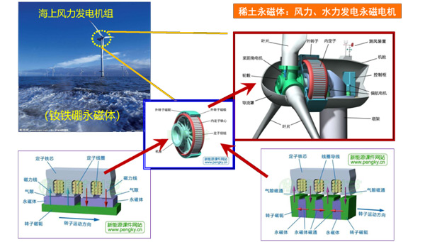 近些年,由于碳达峰碳中和目标的设立,稀土材料在新能源领域有了突飞猛进的发展。比如大家目前随处可见的风力发电机,一个两兆瓦的风力发电机平均就要用到半吨稀土。